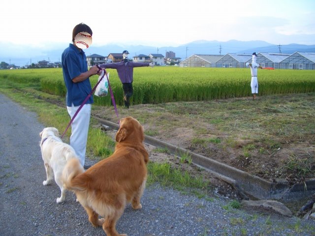 しばらく唸っていたけど・・・かかしさんに興味シンシン