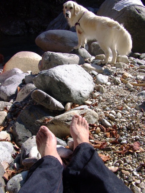 この時、オヤジは、川の真ん中の大きな石の上
