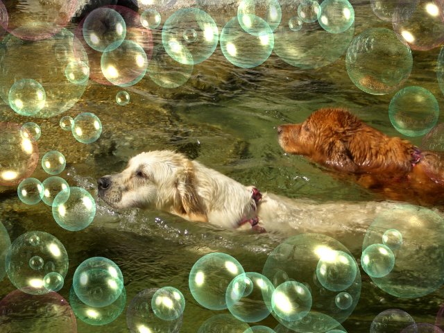 フレンチちゃんとかもライフジャケットを着込んで泳いでました♪
