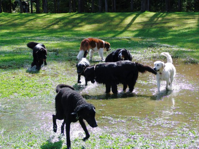 水溜りわんこ達にとっては楽しいのでしょうね。