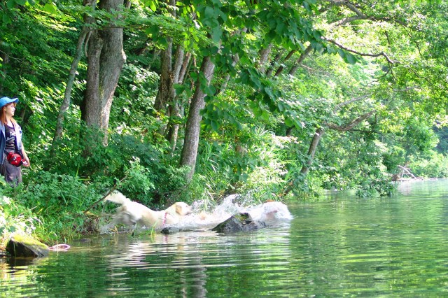 その後、子供達は、カナディアンカヌーに乗り込み湖を満喫していました