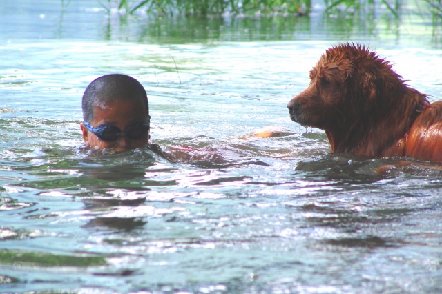 泳ぎ初めは、溺れ犬、メル僧さん(^^