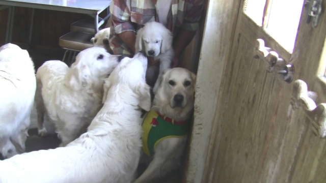 お里恒例ワンワン大歓迎を受けるリンメル一家