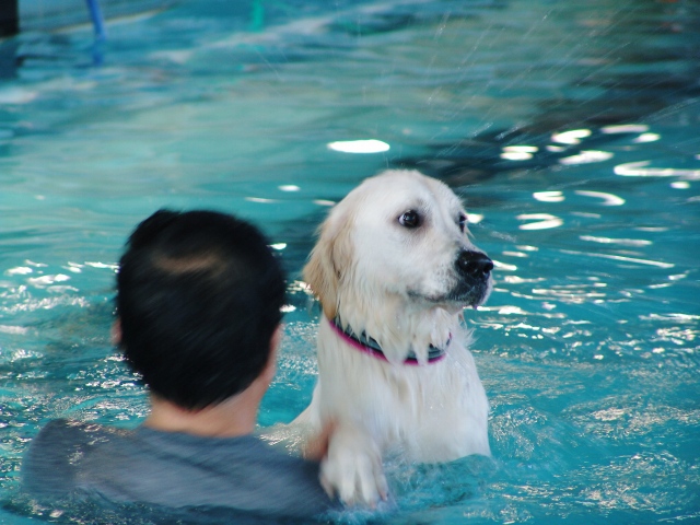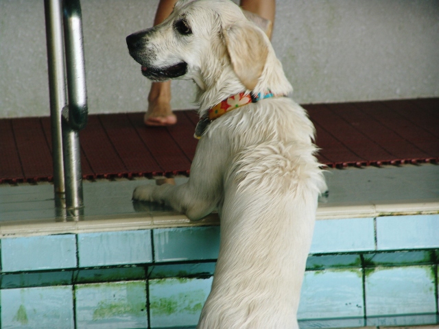 メルさんは、わんわんでの最終日にプールで遊んでいました