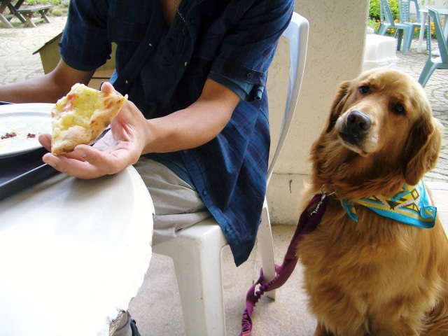 ジュルジュル~美味しそうなピッザに地ビール(?)それになぜかスパゲティーにお箸!(笑)リンちゃんの笑顔の「お手」が本当にカワユイ~抱きしめたいわ~フワフワな毛が懐かスィ~ 今日この頃です。