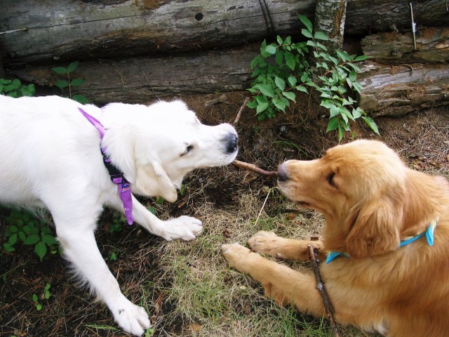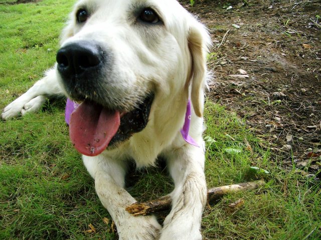 小枝を拾ってメルさんご満悦