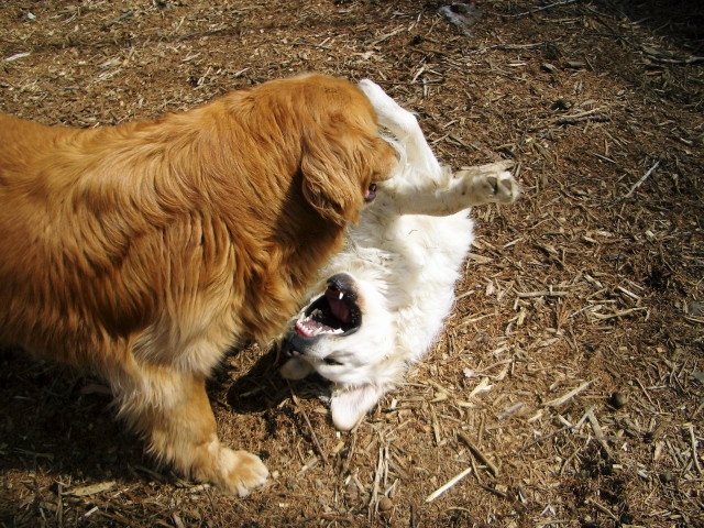 ひっぱりっこになると、体重差でリンの方が優勢です
