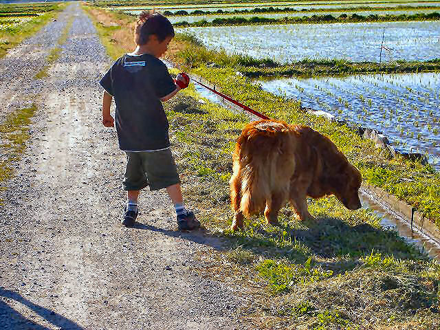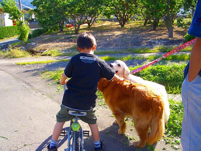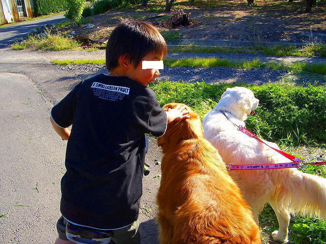 でも、大型犬なもんで、引っ張ると手が痛いのよねえ。。。いつまでも心の優しい少年の心を