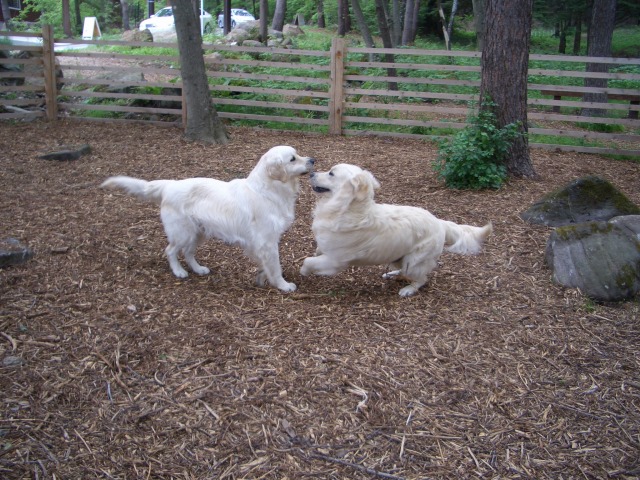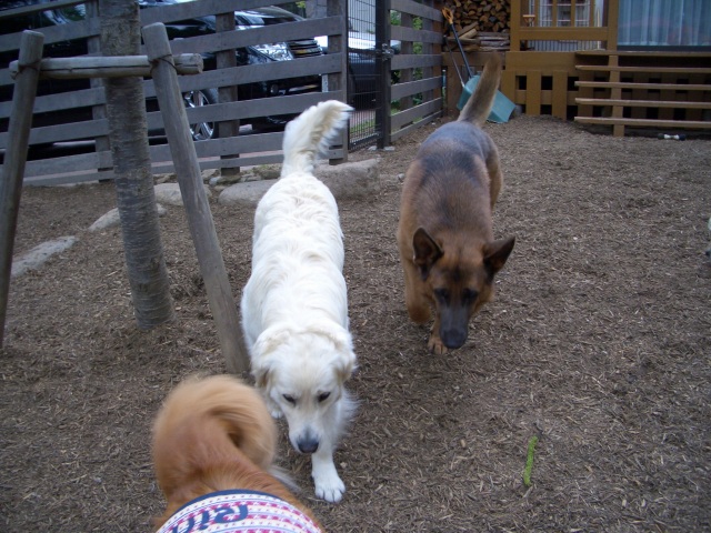 ゴールデン2、フラット2、シェパード2、セントバーナード1という巨体ぞろい。