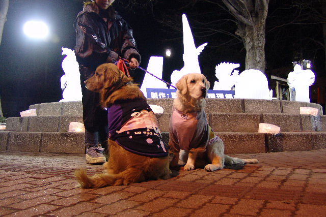 先日、ここ諏訪で「アイスキャンドル イン 諏訪」?[「よみがえれ諏訪湖 ふれアイス in 諏訪湖」だそうです。なる物が、開催されました。各自アイスキャンドルを持ち寄ったりして、あたり一帯を飾りつけ。リンメル連れて夜な夜な見物に行ってきました。